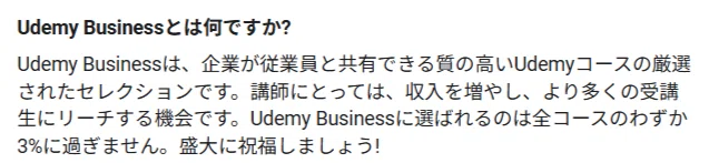 全講座のうちUdemyBusinessに採用されるのは、わずか3%です。