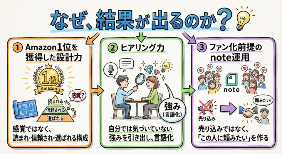 Amazon1位の記事を生み出したヒアリング×設計で、あなたの想いとサービスをnote一つにまとめます。